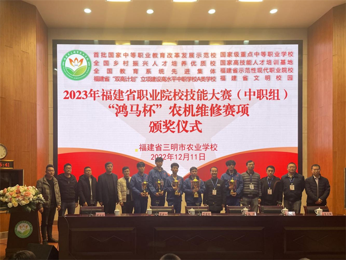 12月9日—12月13日,2023年福建省职业院校技能大赛(中职组)“鸿马杯”农机维修、蔬菜嫁接赛项在三明市农业学校成功举办。我省举办此项赛事是认真学习习近平新时代中国特色社会主义思想,学习贯彻落实党的二十大精神和习近平总书记关于“建设知识型、技能型、创新型的劳动者大军”指示精神的具体举措,是发扬匠心文化、弘扬工匠精神的有效途径。本次大赛共有来自省内各地市选送的8支代表队、29名选手参加。