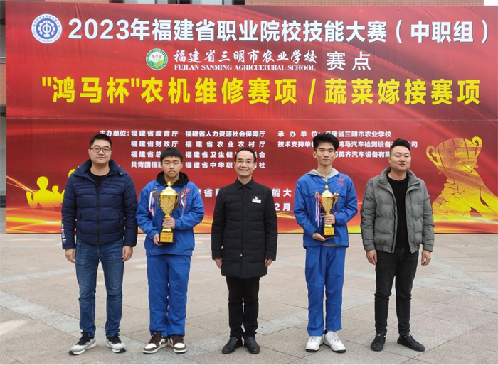 本次大赛三明市农业学校共派出4名选手分别参加了两个项目的比赛,分别获得了“农机维修”赛项一等奖1个、二等奖1个;“蔬菜嫁接”赛项一等奖1个和二等奖1个的好成绩。