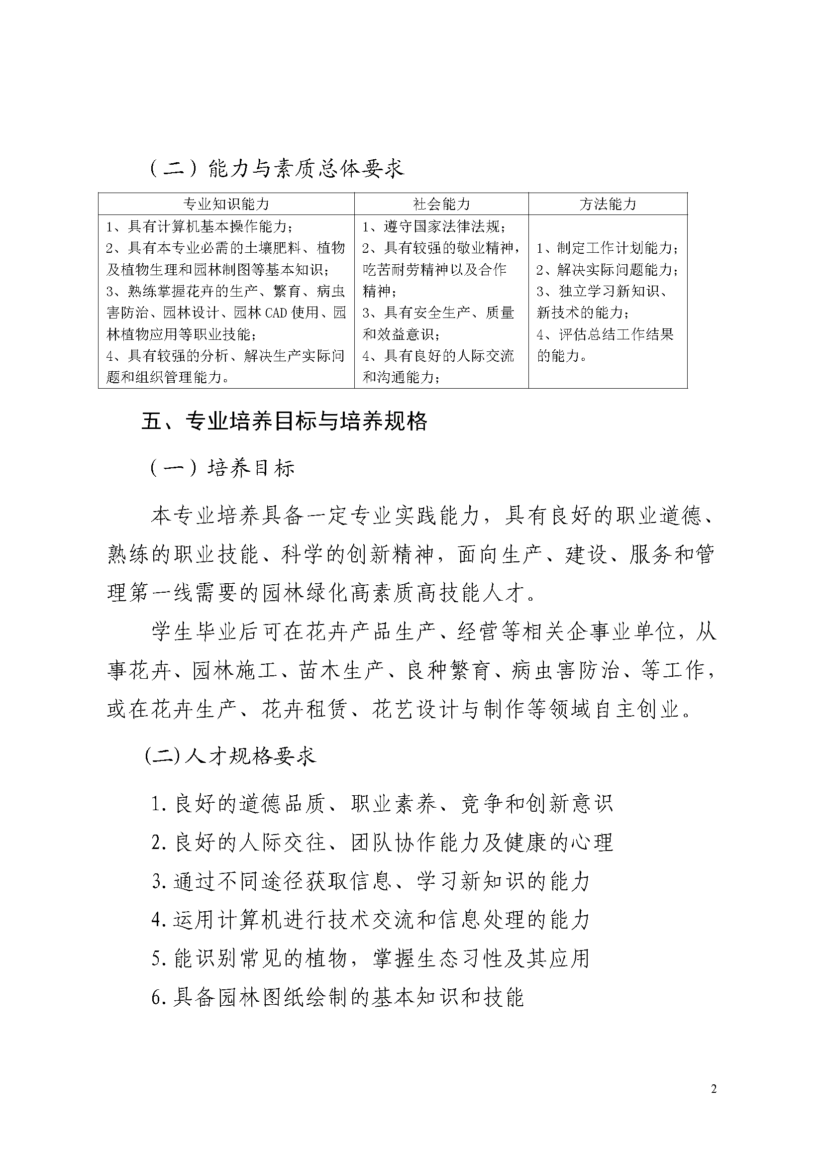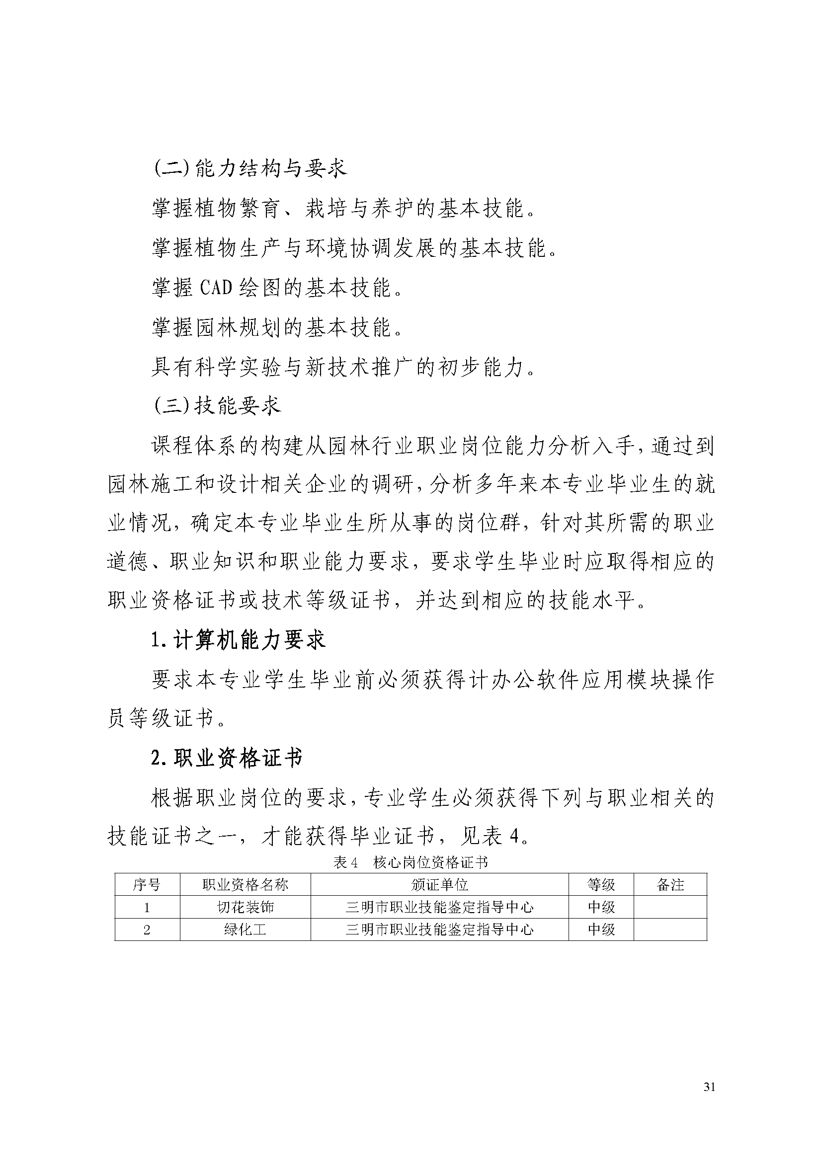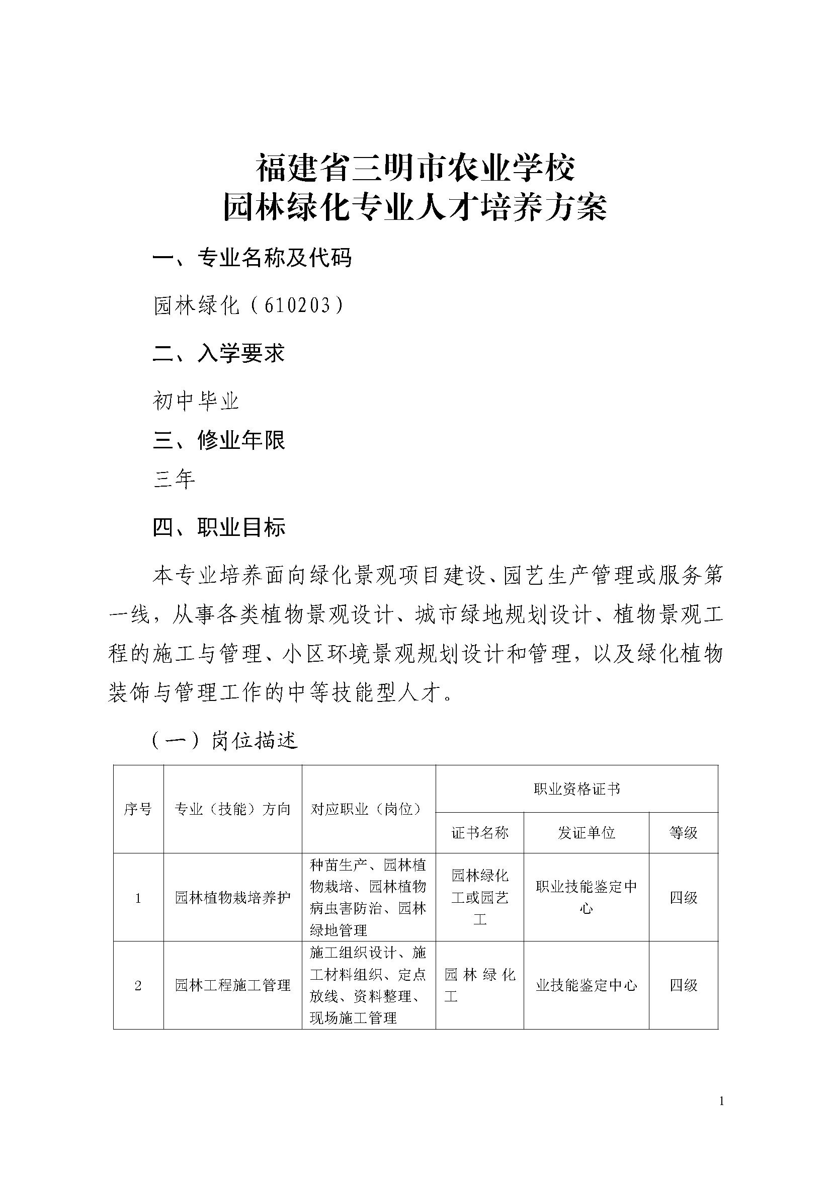 三明市农业学校园林绿化专业人才培养方案(2023)
