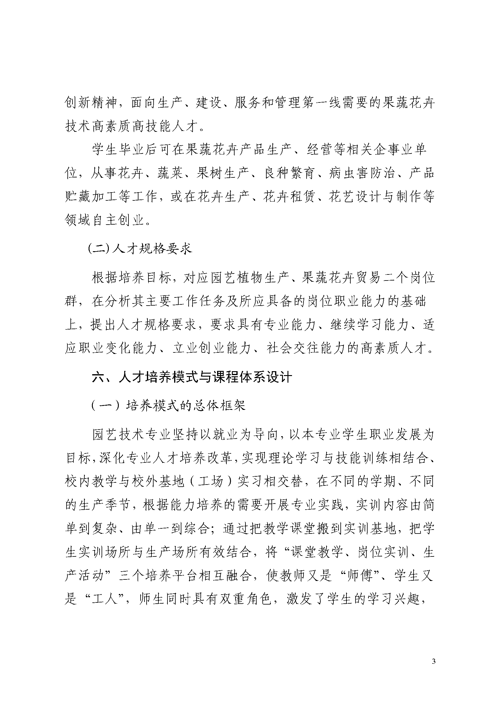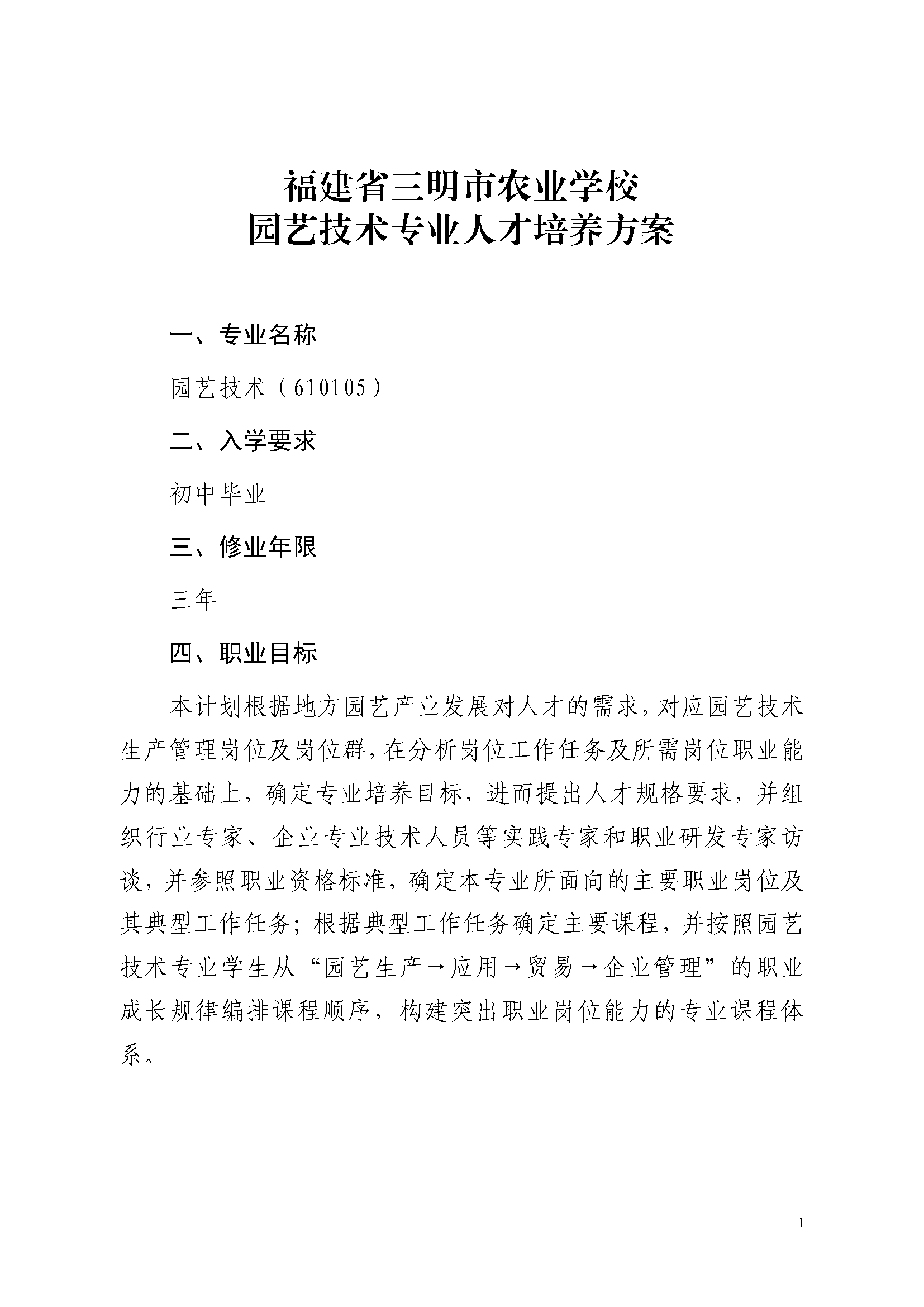 三明市农业学校园艺技术专业人才培养方案(2023)