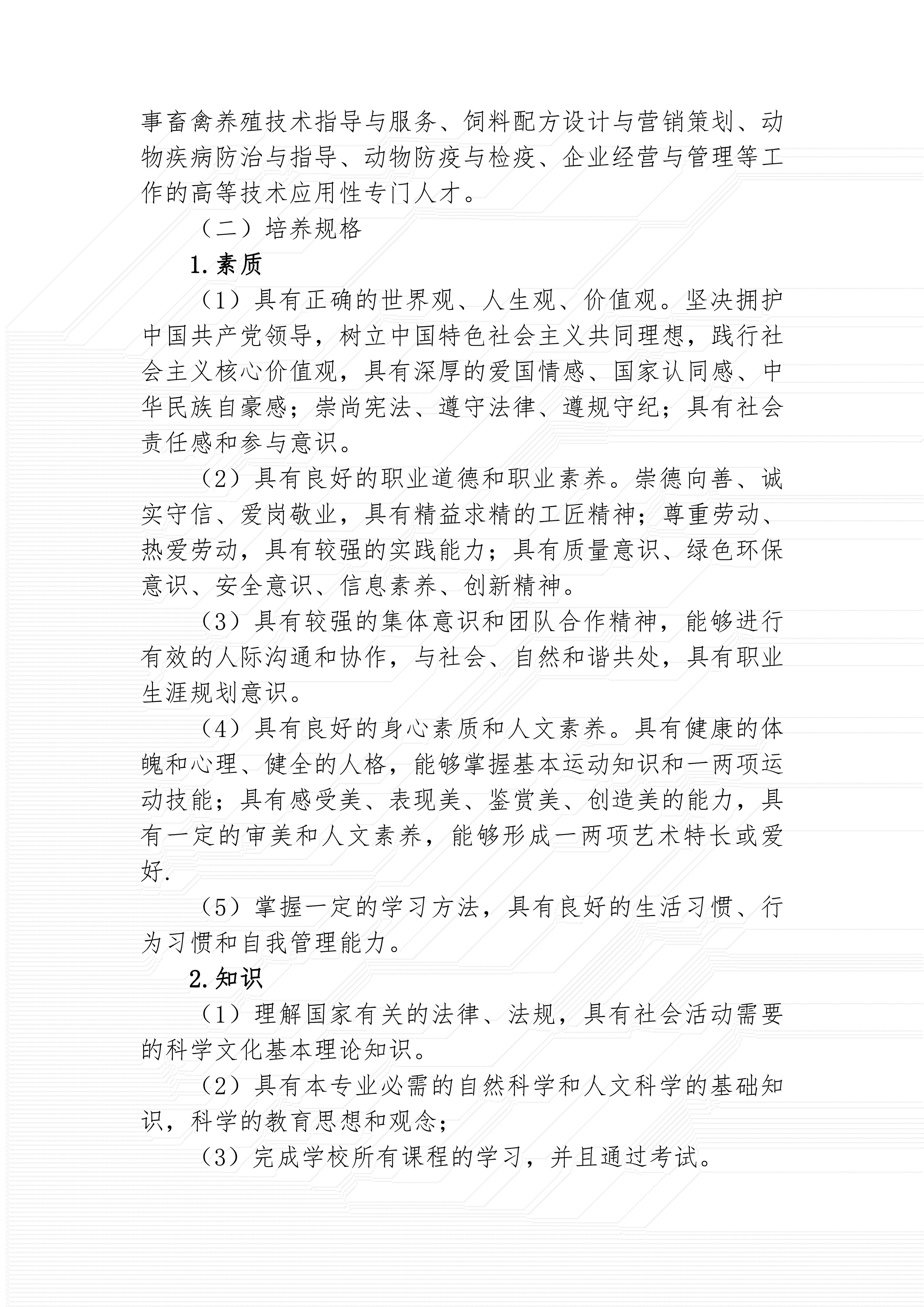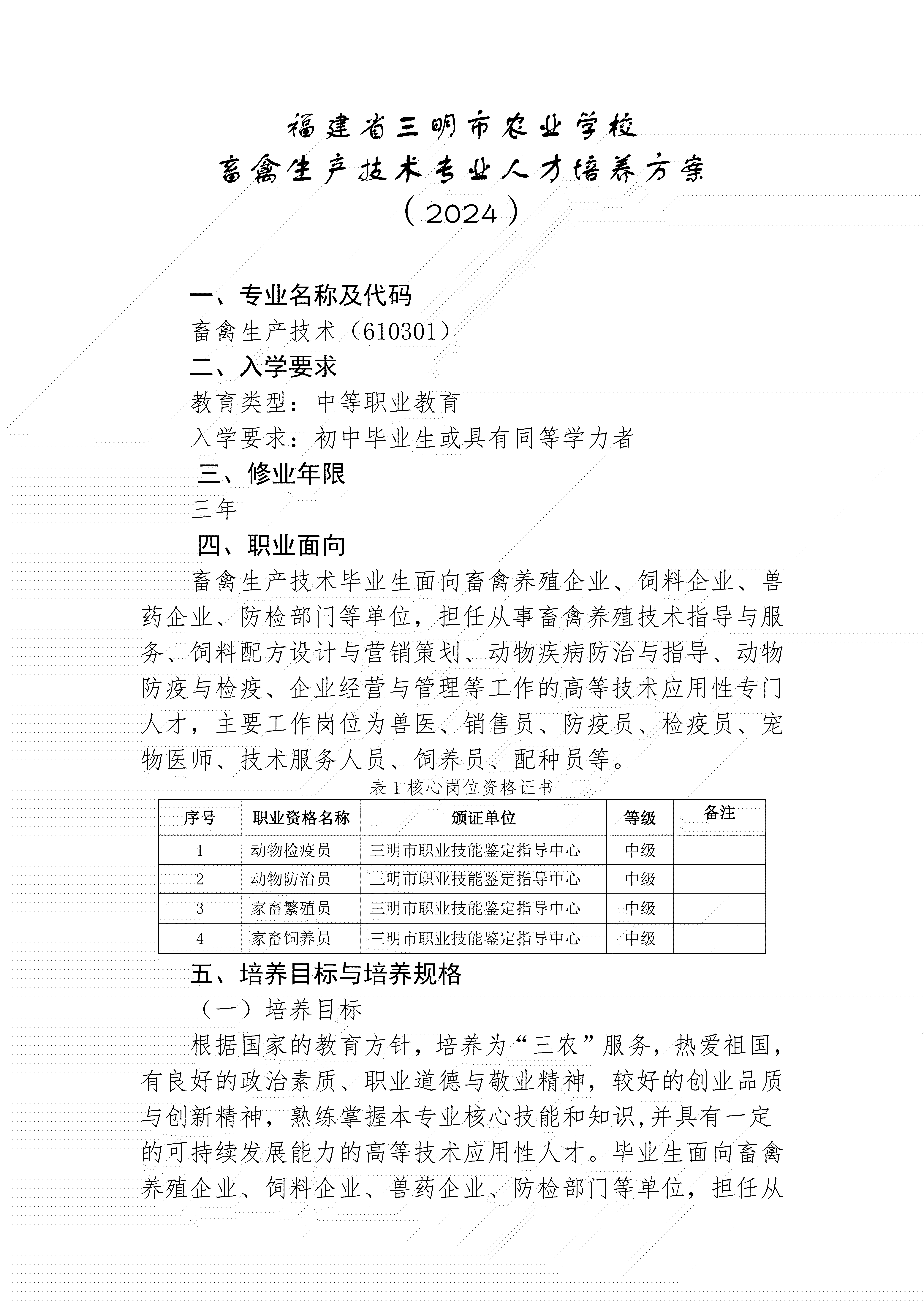 三明市农业学校畜禽生产技术人才培养方案(2024)